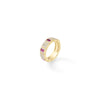 Bold and vibrant, this Obelisco ring is crafted in 18K gold and features pave set diamonds alternating with blue sapphires or rubies. Its striking geometric design and colorful gemstone accents make it a statement piece that embodies contemporary elegance and Roberto Coin’s signature craftsmanship.