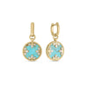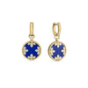 These 18K yellow gold Venetian Medallion earrings combine timeless elegance and subtle sparkle. Featuring diamonds paired with the a high polish finish, lapis, mother of pearl, or turquoise, their dangle design adds graceful movement to any ensemble.