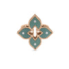 This sophisticated small flower ring artfully combines warm 18K rose gold with striking green titanium accents. Featuring glittering princess-cut diamonds, the Venetian-inspired design offers a harmonious balance of elegance and contemporary style, perfect for adding refined charm to any collection.