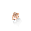 This exquisite 18K rose gold ring showcases a delicate small flower motif, enhanced by pave diamonds and a vivid chrysoprase gemstone. Its Venetian inspired design combines refined elegance with expert craftsmanship, making it an ideal accessory for those seeking sophisticated and timeless jewelry. The brilliant diamonds add subtle sparkle, while the chrysoprase, mother of pearl, or rhodonite offers a distinctive pop, perfect for elevating any ensemble with a touch of luxury.