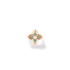 This exquisite 18K rose gold ring showcases a delicate small flower motif, enhanced by pave diamonds and a vivid chrysoprase gemstone. Its Venetian inspired design combines refined elegance with expert craftsmanship, making it an ideal accessory for those seeking sophisticated and timeless jewelry. The brilliant diamonds add subtle sparkle, while the chrysoprase, mother of pearl, or rhodonite offers a distinctive pop, perfect for elevating any ensemble with a touch of luxury.